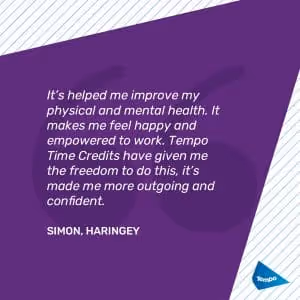 Mae gennym ni i helpu fy anableddau ond os oes gennych chi ddim yn gallu fforddio ers cryn amser. Mae Credydau Amser wedi helpu gyda fy mod yn gallu mynd ar yr wythnos! - Gwirfoddolwr Tempo, Gwrecsam
